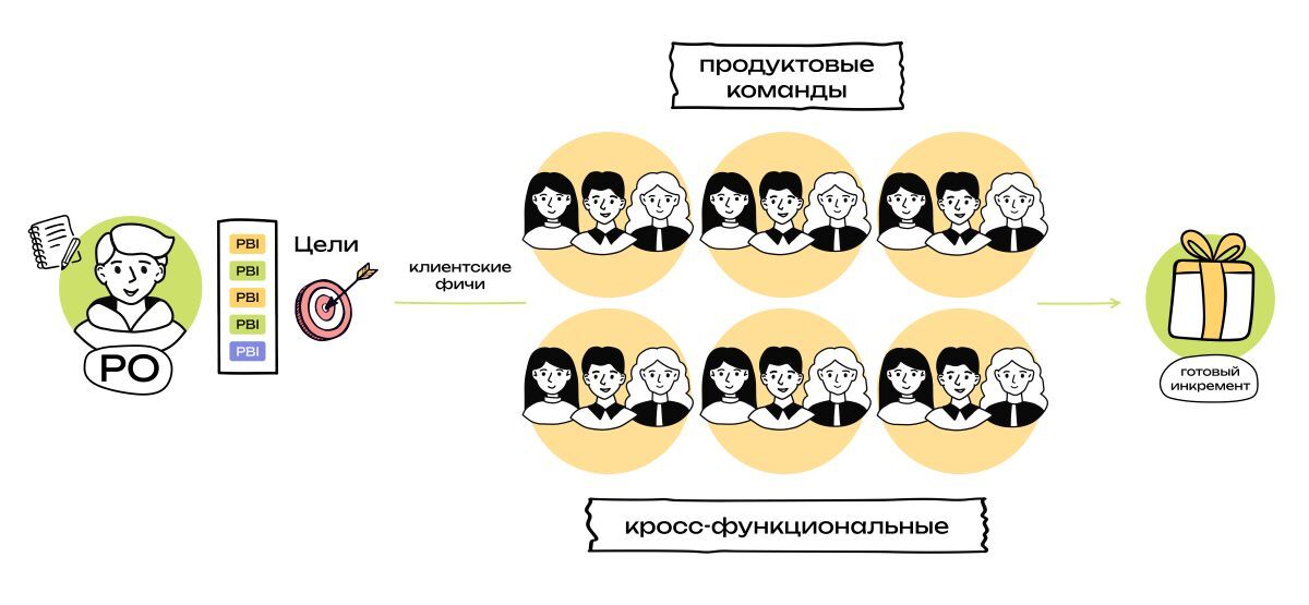 Внутри продуктовых групп работают кросс-функциональные и кросс-компонентные фиче-команды, которые способны брать на себя широкий спектр задач по продукту. Такой дизайн обеспечивает высокую адаптивность и скорость валидации гипотез.